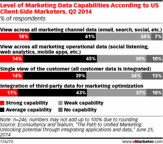 Otro estudio de Econsultancy y Tealium, encontró resultados similares, con más de la mitad de los comerciantes de los Estados Unidos, diciendo que el deseo de construir un único punto de vista del cliente es una prioridad clave de la unificación de datos, en combinación con todas las aplicaciones que ayudan en el marketing de hoy.